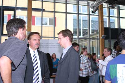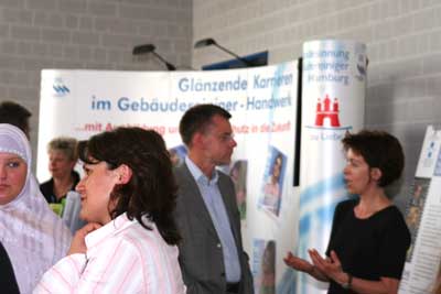 Herr Bösenberg, Geschäftsführer von team.arbeit.hamburg, Hamburger Arbeitsgemeinschaft SGB II und Herr Nauber, Behörde für Wirtschaft und Arbeit, Abteilungsleiter Arbeitsmarktpolitik überzeugten sich vor Ort von den Angeboten.